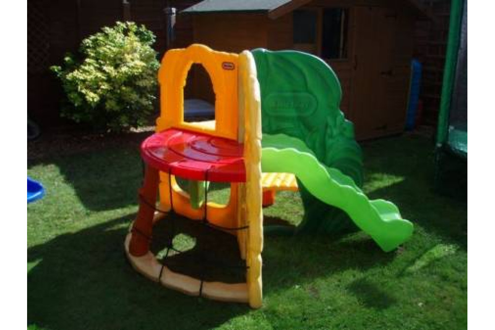Игровой комплекс »Джунгли» Little Tikes представляет собой двухуровневый игровой комплекс с горкой, лазами, сетчатой стеной и секретным входом.