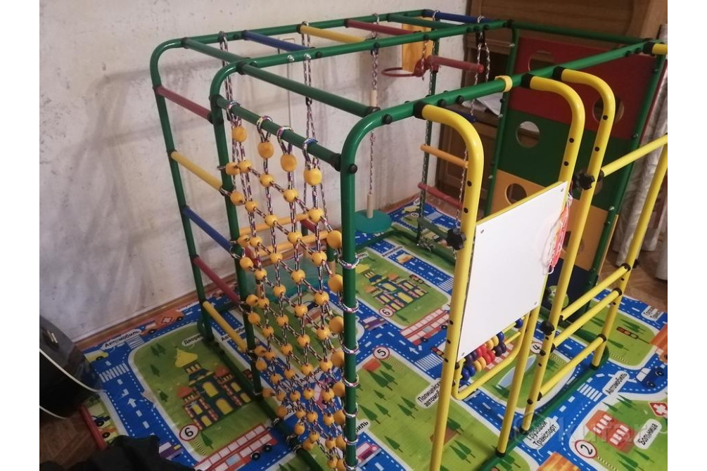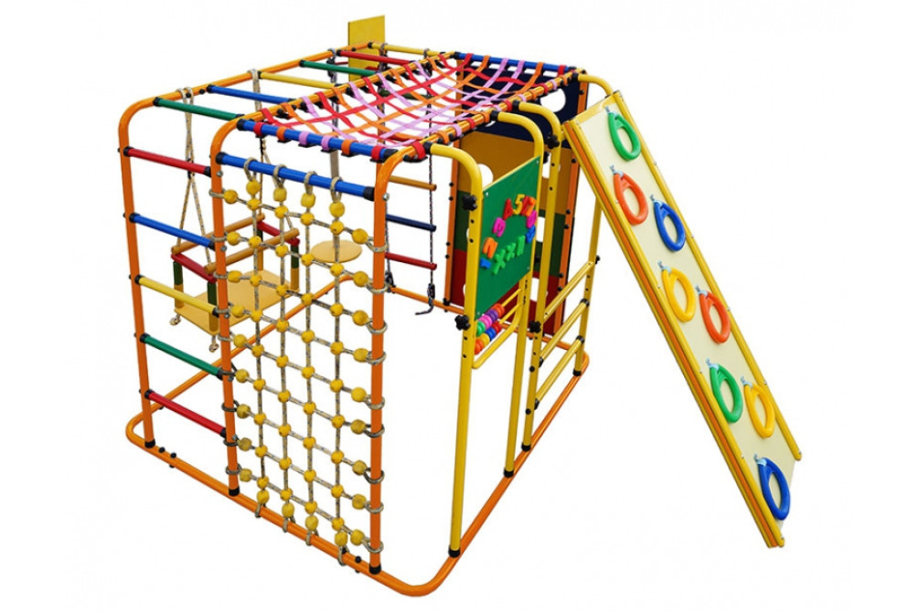 Детский спортивный комплекс «Кубик» вызовет интерес даже у самого привередливого ребенка. Куб пропорциональная фигура, которая зрительно будет занимать мало места и прекрасно впишется в интерьер детской комнаты. Спортивный комплекс «Кубик» тяжелый и, соответственно устойчивый. Не требует креплений к полу, стене или потолку, а также особых навыков при установке. Комплектация позволяет развивать разные группы мышц. Ребенок может ползать, при этом укреплять спину и руки, лазая по перекладинам развивать моторику рук и ног. Рукоход даст возможность снять усталость и тяжесть со спины, а также станет отличным помощником для роста. Гладиаторская сетка отлично повлияет на большинство мышц, так как при лазании по ней необходимо держать баланс всего тела, что укрепляет всю мышечную систему. Этот спорткомплекс будет интересен, как малышам, так и детям постарше