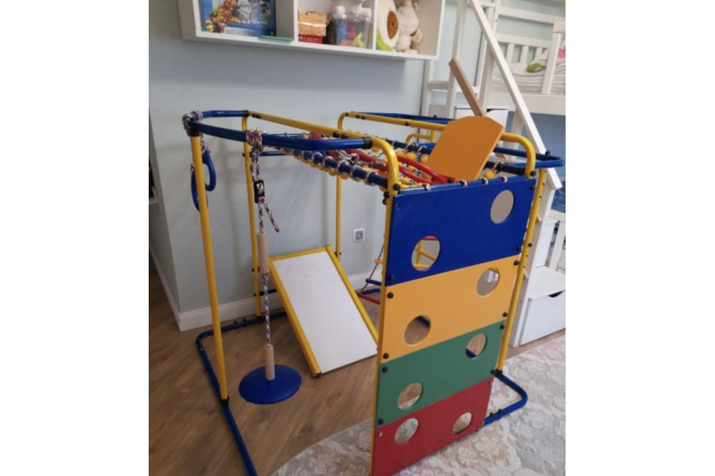 Для малышей такой спорткомплекс подходит намного больше, чем обычная шведская стенка. Благодаря компактной форме, малыш будет чувствовать себя уверенно и комфортно.