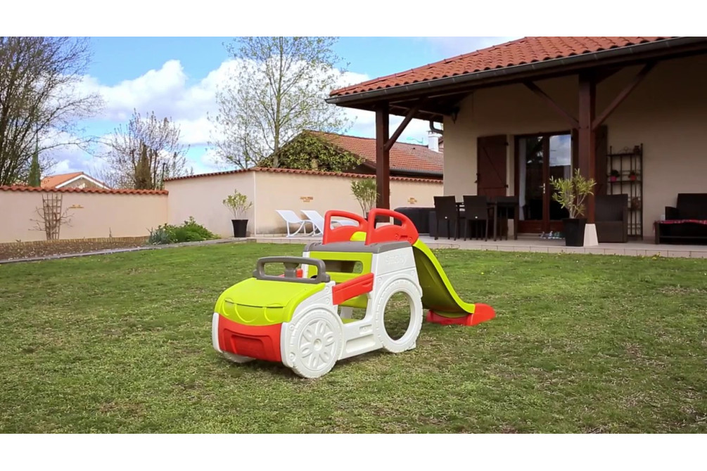 Новый игровой комплекс для летних приключений. Комплекс выполнен виде машинки с горкой. Скат горки составляет 150 см. Под капотом машины располагается удобная песочница, защищенная от дождя самим капотом. Двери машины открываются. Через задние колеса можно пролезть как в тоннеле. Если захочется управлять автомобилем, то есть музыкальный руль.Для работы руля необходимы батарейки LR44 – 3 шт. (входят в комплект). Весь пластик производится по особой технологии, которая позволяет выдерживать высокие нагрузки. Комплекс покрыт антиультрофиолетовым покрытием, которое защищает комплекс от выгорания на солнце, что позволяет сохранить красивый вид комплекса на протяжении многих лет. Размер игрушки: 233*68*91 Размер упаковки: Длина: 120 Ширина: 40 Высота: 75 Вес: 16