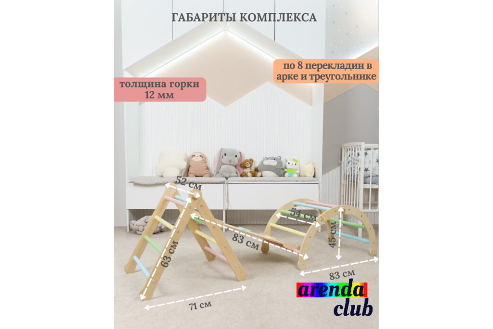 Спортивный комплекс Треугольник Пиклера с горкой и аркой – отличное решение для развития вашего ребенка! Этот игровой комплекс по методике Эмилии Пиклер рекомендуем для детей от 1 года до 4 лет. В комплект входит треугольник Пиклер, арка-качалка и горка-скалодром, которые помогут развить силу, ловкость, координацию, моторику и фантазию вашего малыша.
