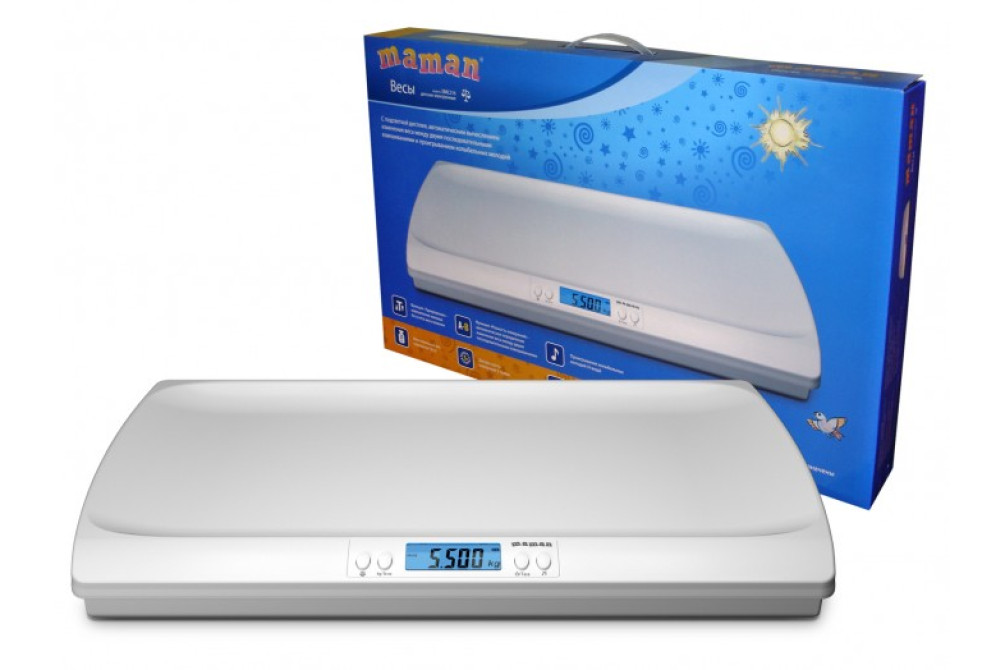 Maman SBBC 216 - электронные весы для взвешивания новорожденных с подсветкой дисплея, автоматическим вычислением изменения веса между двумя последовательными взвешиваниями и проигрыванием колыбельных мелодий. Устойчивая плоская конструкция весов со специально спроектированным профилем и низким центром тяжести безопасна в эксплуатации.