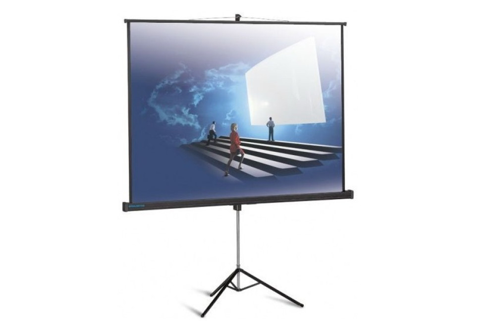 Проекционный экран на штативе. Прост в управлении, ударопрочен.