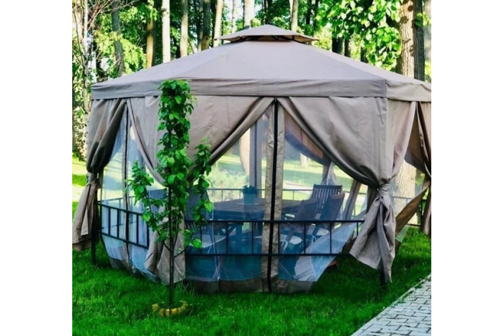 Сдаётся в аренду шестиугольная беседка - шатёр. Комфортно может разместиться компания 6-8 человек. Праздники, День рождения, пикник на природе, отдых за городом с нашей беседкой вы сможете организовать на высоком уровне. Осуществляем доставку, монтаж и демонтаж беседки на всей территории РБ. Так же для проведения мероприятий и организации отдыха можем предложить в аренду: казан 12 литров с печкой, мангал, столы и стулья, генераторы, баня - бочка, осветительные мачты. Полный спектр оборудования для комфортного проведения Вашего отдыха. Беседка - 60 руб./сутки; 100 руб./2 суток. Монтаж и демонтаж - 40 руб. Казан с печкой - 50 руб./сутки; 80 руб./2 суток. Мангал с шампурами и решёткой - 20 руб./сутки. Баня - бочка от 65 руб./сутки. Генераторы от 1,5 кВт до 8 кВт - от 25 руб./сутки. Звоните - договоримся.