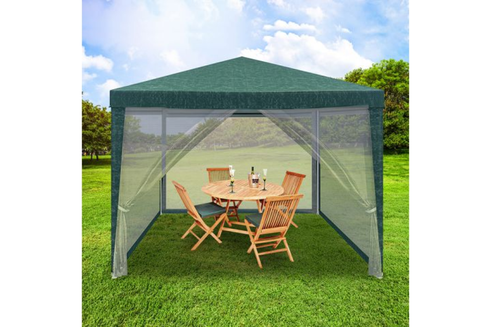 Шатер с легкостью трансформируется из летней беседки в маленький домик со стенами из москитных сеток, способными защитить Вас от насекомых. Его не рекомендуется использовать как костровой тент, а также при сильном ветре и дожде.