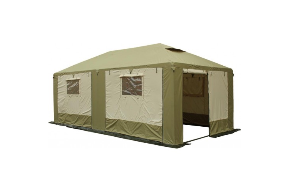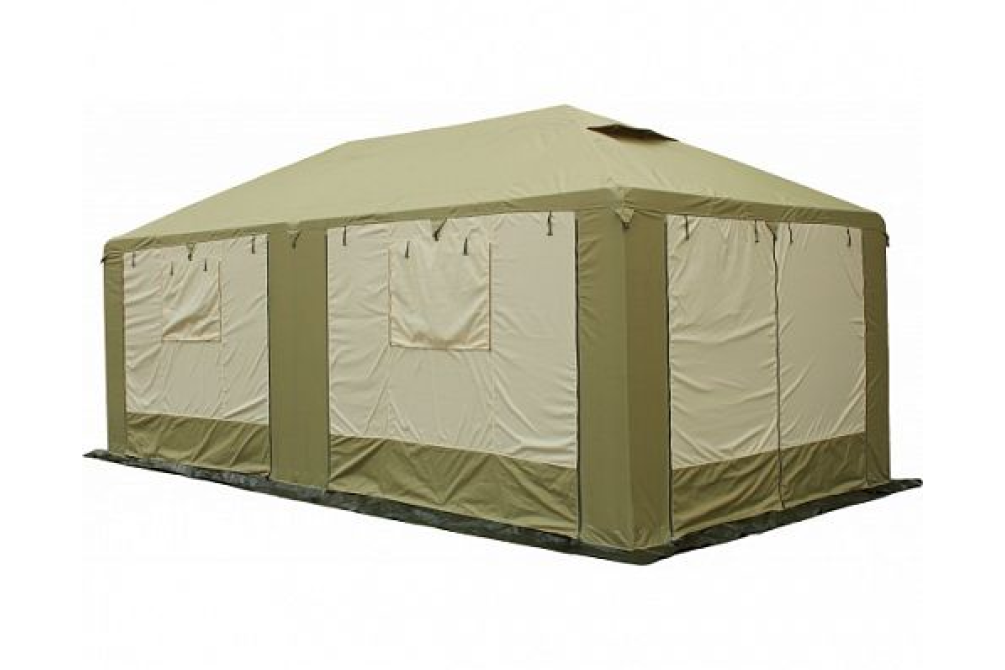 В четырех противоположных боковых стенах имеются окна из прозрачной пленки, закрывающиеся шторками на молниях.