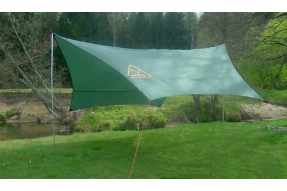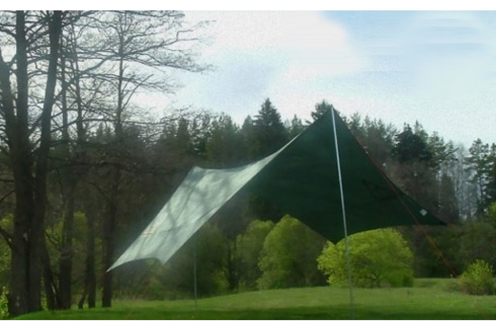 Удобный тент со стойками. Очень простая установка. Незаменим для пикников, так как вы будете защищены от непогоды и солнечных лучей.