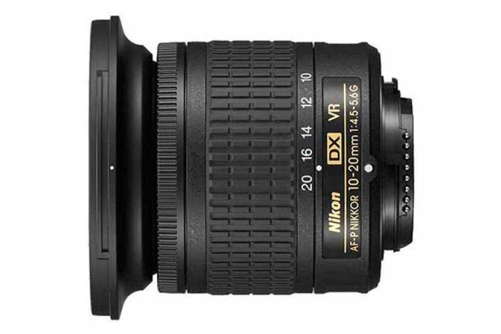 Nikon AF-P DX Nikkor 10-20mm F4.5-5.6G VR является одним из трех объективов, выпущенных Nikon вместе с двумя более высококлассными линзами. Эта оптика, в отличие от остальных новичков, рассчитана на работу с камерами, оборудованными датчиками формата APS-C. Он лёгкий и не дорогой. Эквивалентное фокусное расстояние составляет 15-30mm. Система подавления вибраций обеспечивает компенсацию 3,5 стопов вибраций. Он использует импульсный двигатель, так что фокусировка осуществляется быстро и тихо. Минимальное расстояние фокусировки составляет 22см. Объектив 10-20mm не имеет электронного управления диафрагмой, что может ограничить способность регулировать диафрагму в режиме Live View или при съёмке видео.