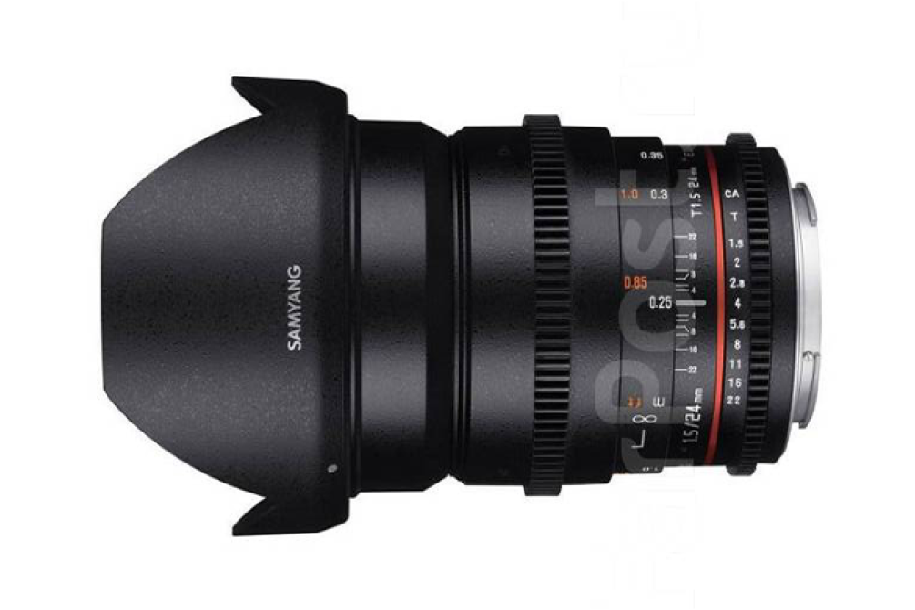 Широкоугольный объектив с ручной фокусировкой Samyang 24 mm T 1,5 ED AS UMC VDSLR предназначен для полноразмерных цифровых фотоаппаратов. Сделан специально для использования с механизмами видеосъёмки цифровыми зеркальными фотоаппаратами. На корпусе объектива нанесена шкала дистанции и диафрагмы с поворотом на 90 градусов. Фокусировочное кольцо и кольцо диафрагмы имеет специальную зубчатую передачу и плавный ход. Объектив выполнен в надежном и качественном корпусе из металла и пластика с металлическим байонетом.