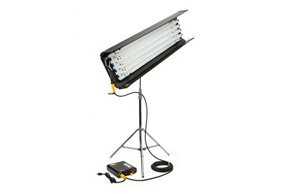 KinoFlo SYS-2404-230 дает необыкновенно мягкий световой поток высокой интенсивности. Диммируется без изменения цветовой температуры, без мерцания и высокочастотного шума. Это достигается поламповым выключением и углом наклона корпуса прибора к объекту. Используемый тип ламп для 4Banc 2ft – F40/T12.