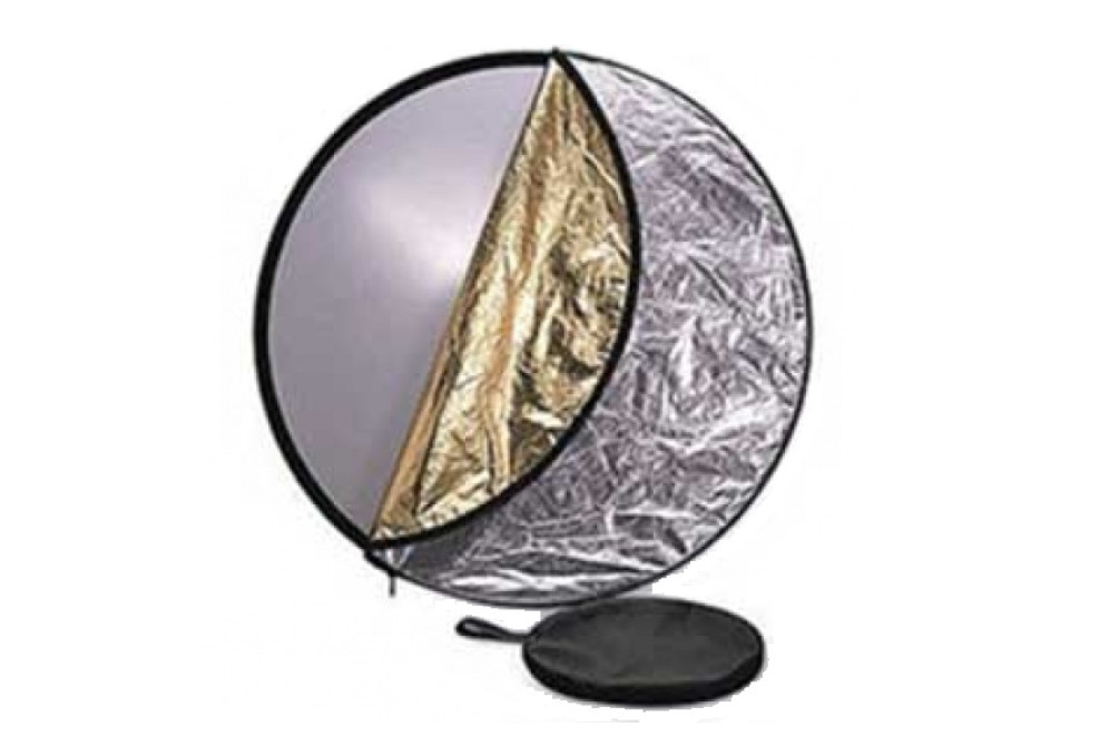 Диаметр 120 см. Создает мягкий отраженный свет - золотой, серебряный, белый, просвет, чёрный. Легко складывается, удобен в перевозке.