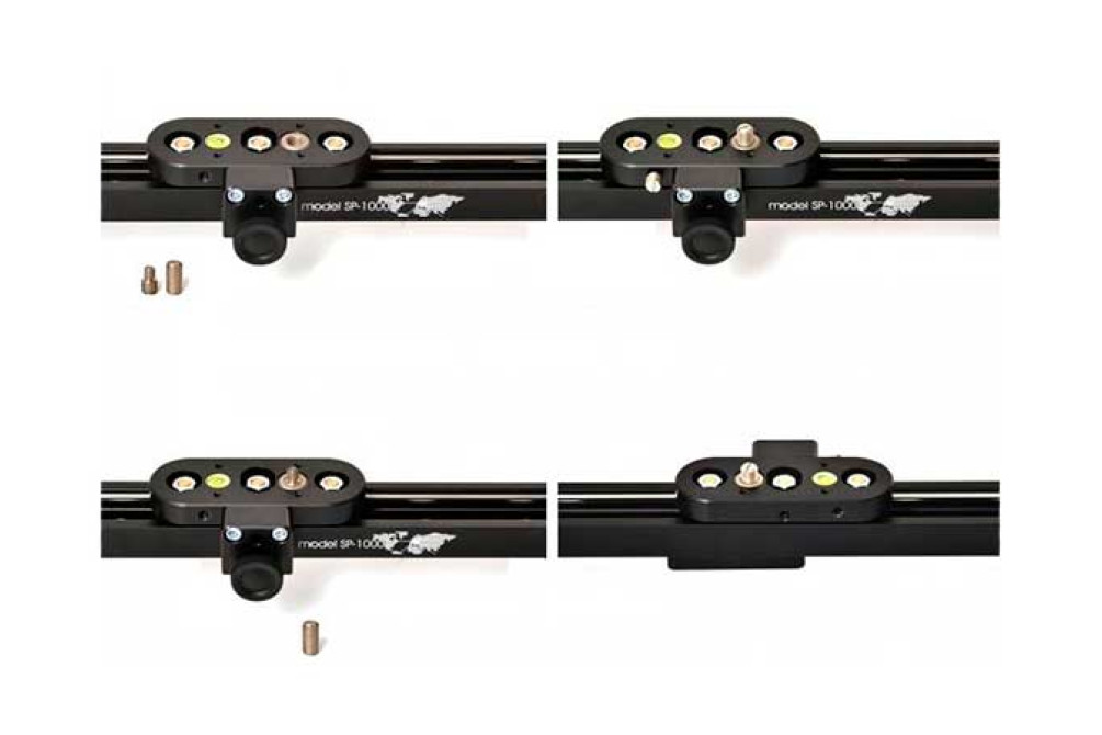 Специально разработанная каретка, перемещающаяся по направляющей, снабжена тремя роликами из нержавеющей стали (INOX). Каретка перемещается внутри направляющей, что обеспечивает дополнительную защиту от повреждений. Четыре отверстия M4 и два 1/4", расположенные в каретке, позволяют размещать оборудование и аксессуары в различных комбинациях.