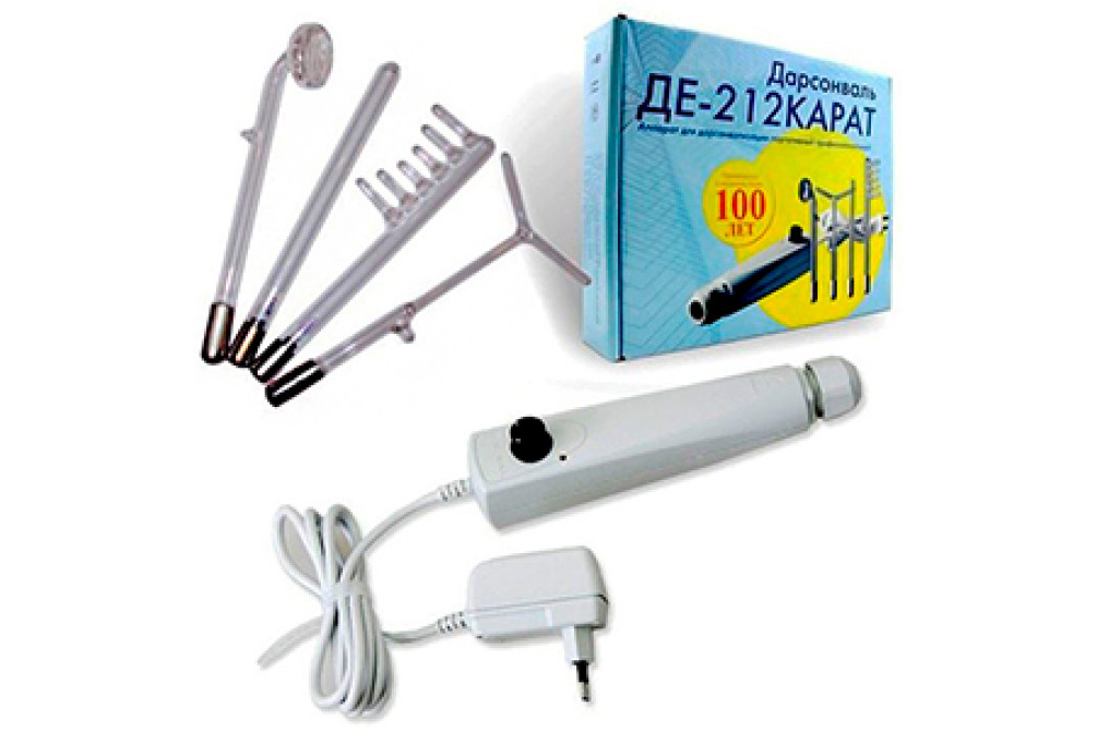Косметологический аппарат DE-212 имеет в комплекте сам Дарсонавль и самый распространенный набор электродов-насадок: грибок, расческа, рогатка и палочка. Этот аппарат со всеми насадками, которые входят в комплект, позволяет делать до 90% разных процедур улучшающих ваш внешний вид и общее самочувствие.