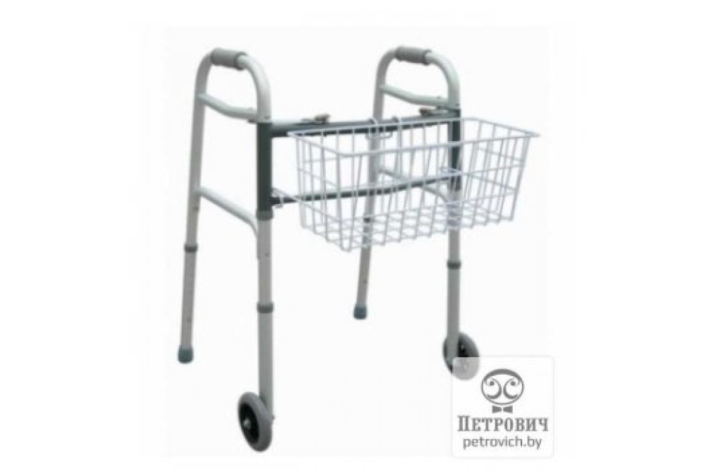 На передних опорах установлены колеса и корзина для личных вещей или продуктов.