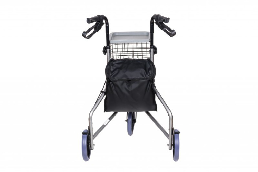 Для удобства эксплуатации имеются удобная сумка, прикрепленная к раме ходунков и металлическая корзина-столик.