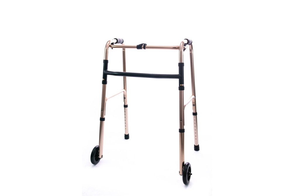 Для больных весом до 120 кг. Помощь в передвижении инвалидам и больным с нарушением функций опорно-двигательного аппарата. Могут быть использованы после перенесенных инсультов, черепно-мозговых и спинальных травм, переломах, операциях, на этапе выздоровления после длительных заболеваний. Ширина между поручнями 46 см. Высота опоры регулируется через каждые 2,5 см. В конструкцию опоры-ходунка заложена функция «шагание». Анодированный алюминий c лаковым защитным покрытием. Легко складываются. Не оставляют следов на полу. Вес 2,4 кг.