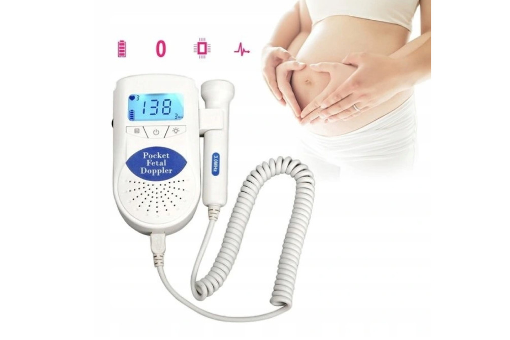Фетальный допплер - это медицинское устройство , измеряющее частоту сердечных сокращений плода, результат которого отображается на экране.