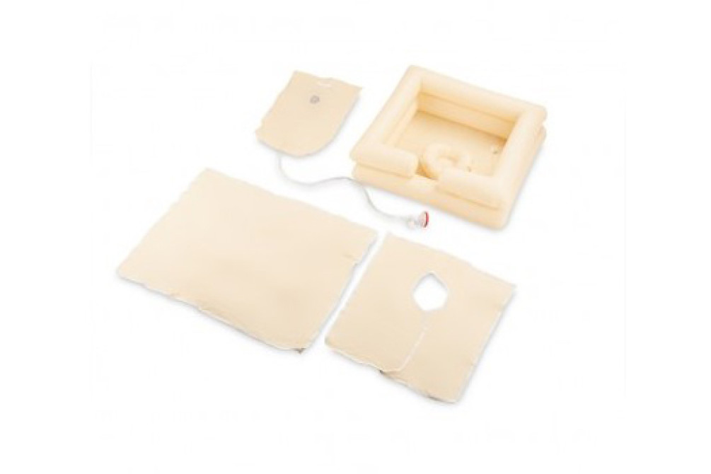 Обязательный атрибут ухода за лежачими и престарелыми пациентами — надувная ванночка-подголовник для мытья головы в постели. Очень удобна: фиксирует голову пациенту, снимает нагрузку с плеч. Позволяет полноценно вымыть голову, оставляя сухими другие части тела и постельное белье. Ванночка снабжена отверстием-сливом.