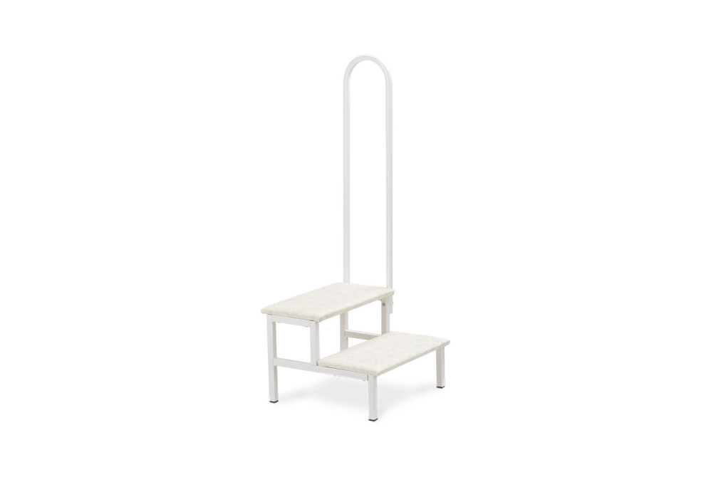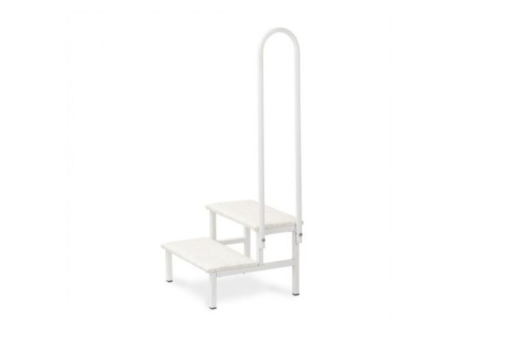 Это приспособление смело можно назвать »лесенка для ванной комнаты с поручнем» — двойная ступень с дополнительно присоединяемым удобным поручнем для надежной поддержки.
