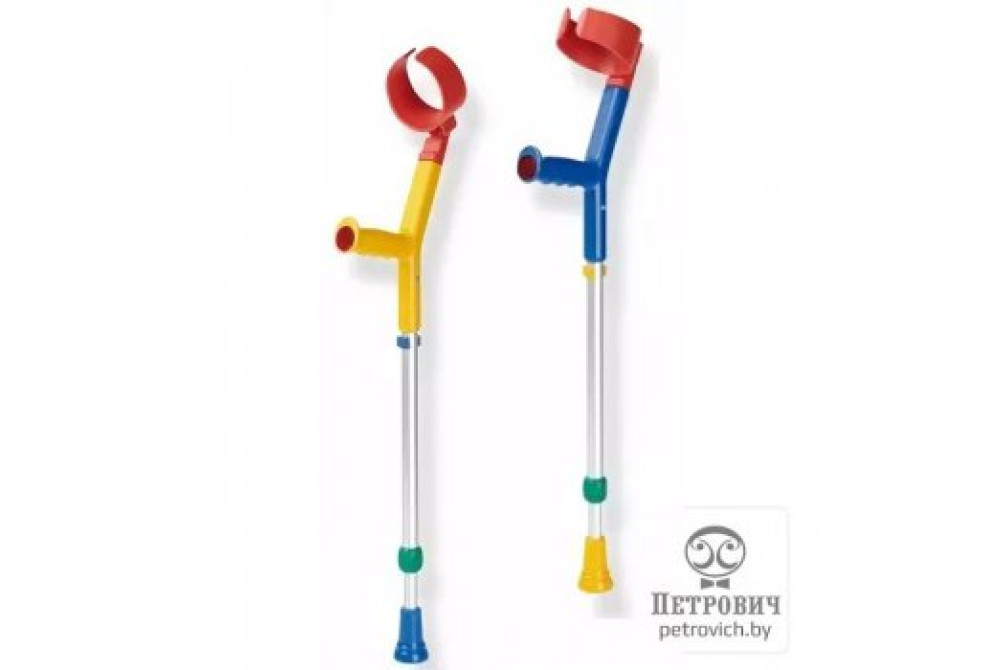 Костыль подлоктевой, детский, мод. Фан-Кидс, нагрузка до 100 кг. Регулируемая высота ручки от 49 до 71,5 см, регулируемая высота подлокотника от 17,5 до 22,5 см, на рост 114-150 см.
