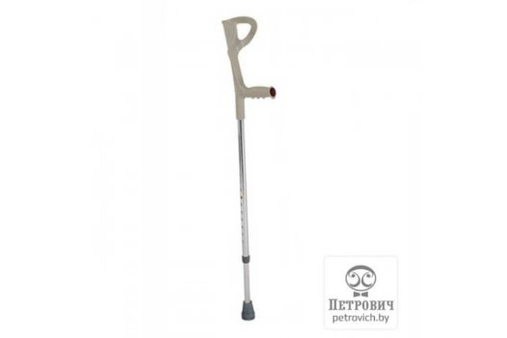 Двухопорный фиксатор повышает надежность и позволяет регулировать высоту костыля через 25 мм. Для подбора индивидуального положения рукоятки по высоте следует переставить фиксатор на требуемый уровень. Резиновый наконечник обеспечивает надежное сцепление с гладкой поверхностью при ходьбе.