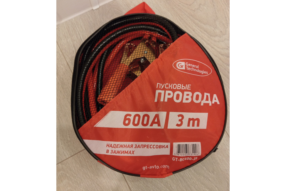 Пусковые провода 600 А длиной 3,0 метра (надежная запрессовка в зажимах) пригодится для запуска легковых автомобилей, мотоциклов, генераторов и других приборов. Для прикуривания от заведенной машины.