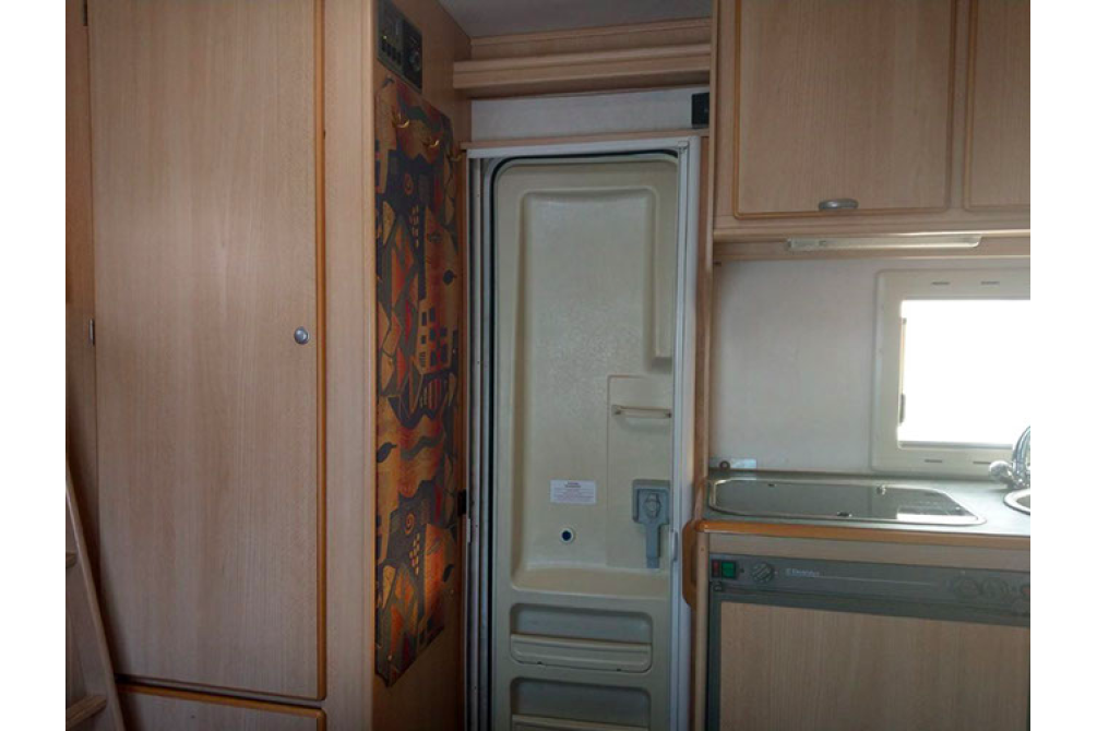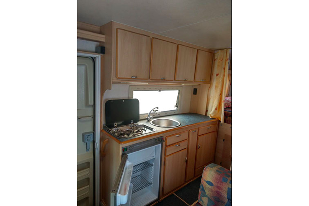 Кухня (плита на 3 конфорки, мойка, холодильник, шкафы).