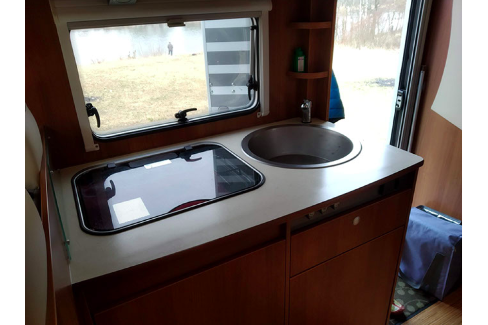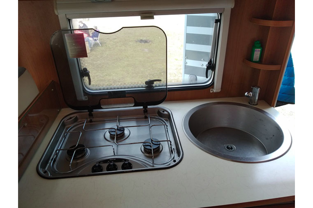 Кухня (плита на 3 конфорки, мойка, холодильник, шкафы).