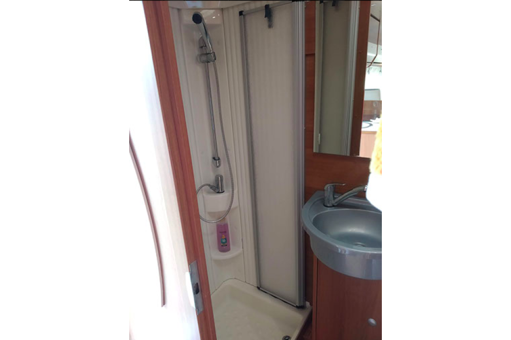 Санузел (умывальник, душ, туалет, шкафы) с горячей водой.