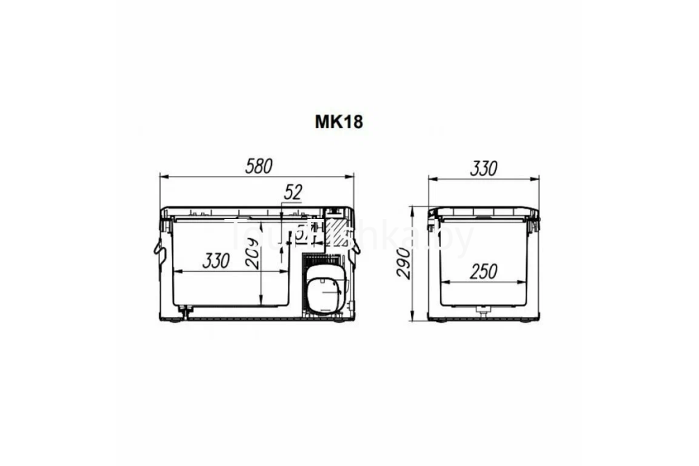Крышка МК-18 – откидная. По бокам модели имеются удобные ручки, облегчающие процесс переноски. При открытии крышки автохолодильника происходит автоматическое включение светодиодной лампы, которая прекрасно освещает обе камеры.