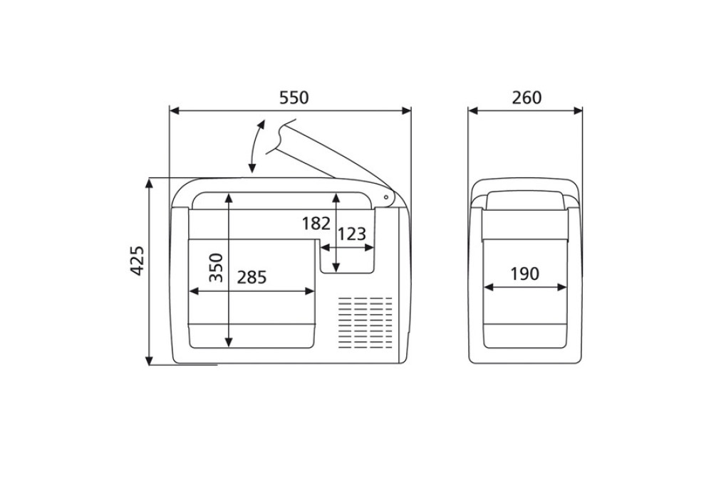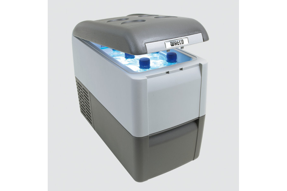 Автохолодильник компрессорный WAECO CoolFreeze CDF 36 Портативные холодильники WAECO CoolFreeze CDF также просто использовать, как и термоэлектрические холодильники. Благодаря наплечному ремню или ручкам для переноски вы можете брать их с собой повсюду. С хранением тоже не будет проблем – благодаря очень плоской форме, они превосходно впишутся в любую нишу. Дополнительные преимущества в связи с производительностью: охлаждение и глубокая заморозка до -15 °C с минимальным потреблением энергии, независимо от температуры окружающей среды. Страна производства – Германия. Полезный объем 31 л. Камера для свежих продуктов 4 л. Диапазон температур от +10°C до -15°C. Размеры (ШхВхГ): 560х380х340 мм. Вес 12,5 кг. Напряжение питания: 12/24/220 В. Потребляемая мощность (приблизительно): 35 Вт. Потребление тока: 0,44 А·ч/ч при температуре окружающей среды +20 °C, 0,67 А·ч/ч при температуре окружающей среды +32 °C, оба показателя — при внутренней температура холодильника +5 °C. Изоляция: Заполнение полиуретановой пеной (PU) Система: Автоматическая защита от неправильного подключения, герметичный компрессор со встроенной управляющей электроникой, защита от пониженного напряжения/электронный предохранитель, электронный термостат Материал: корпус – ПП, крышка – ПП. Цвет: светло-серый/темно-серый. Может работать от солнечной батареи. Сверхтонкий корпус — занимает минимум места. Пространство для вертикально стоящих 2-литровых бутылок. Съемная крышка. Охлаждение и глубокая заморозка. Вынимаемая проволочная корзина. Внутреннее светодиодное освещение. Знак технического контроля — TÜV/GS. Сертификация электроники (нормативы ЭМС/для автомобилей).