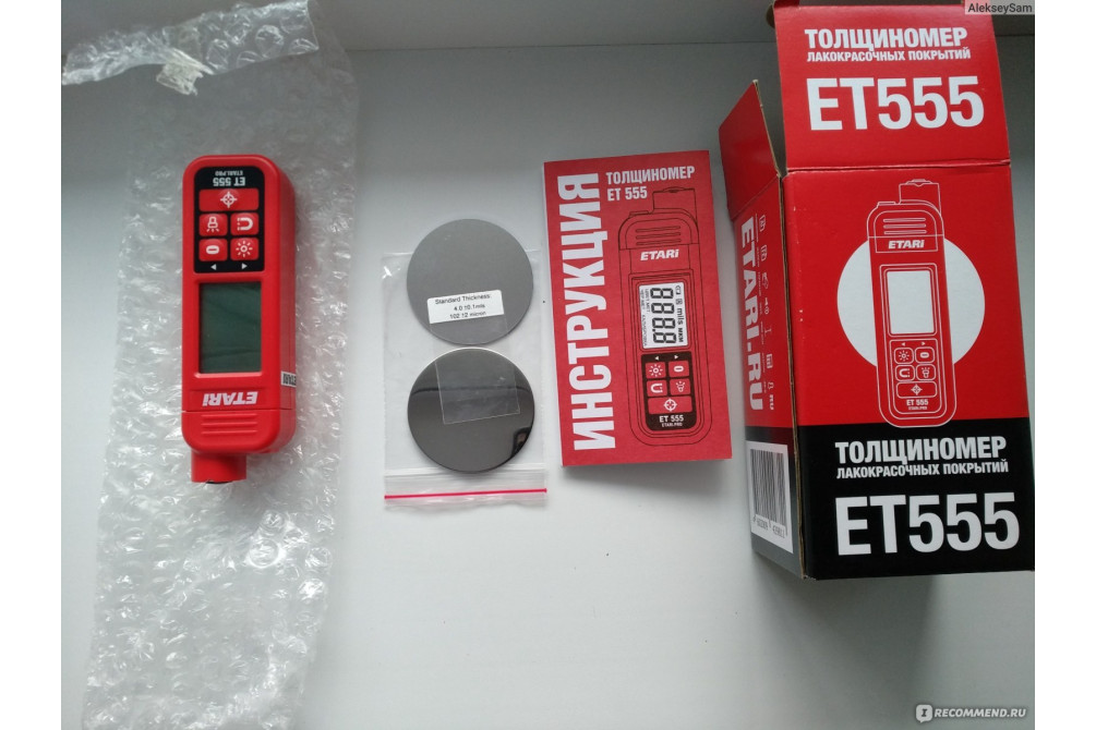 Технические характеристики толщиномер ЕТ-555: Измеряемые поверхности: должны содержать сталь либо железо, в их составе должны отсутствовать цинк, медь, латунь, бронза и алюминий Дисплей: автоотключение, жидкокристаллический с подсветкой Температура измерений: -25..+50°С Диапазон измерений: до 2000 мкм для черных металлов, до 1000 мкм для цветных металлов Наличие русского языка Одноточечная упрощённая калибровка Габариты: 120×40.4×29.2 мм Вес (с аккумулятором): 100 грамм