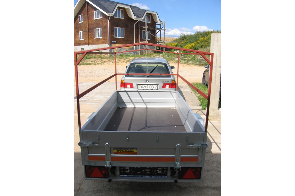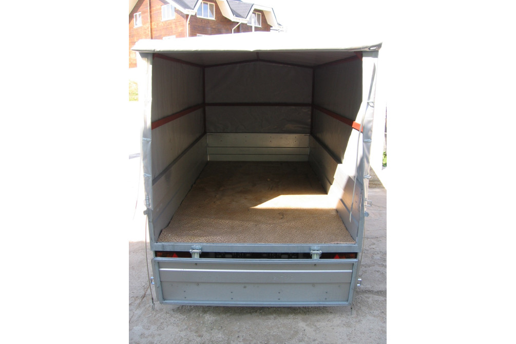 При необходимости задний борт демонтируется. Дополнительно может комплектоваться приспособлениями для перевозки мотоциклов (трап – для заезда и фиксирующая шина). Полная масса 750 кг. Грузоподъемность 400 кг. Размер (длина/ширина): 2,25 х 1,25 м. Тип подвески: рессорная зависимая. Высота тента 1,2 м. Высота прицепа с тентом 1,74 м.