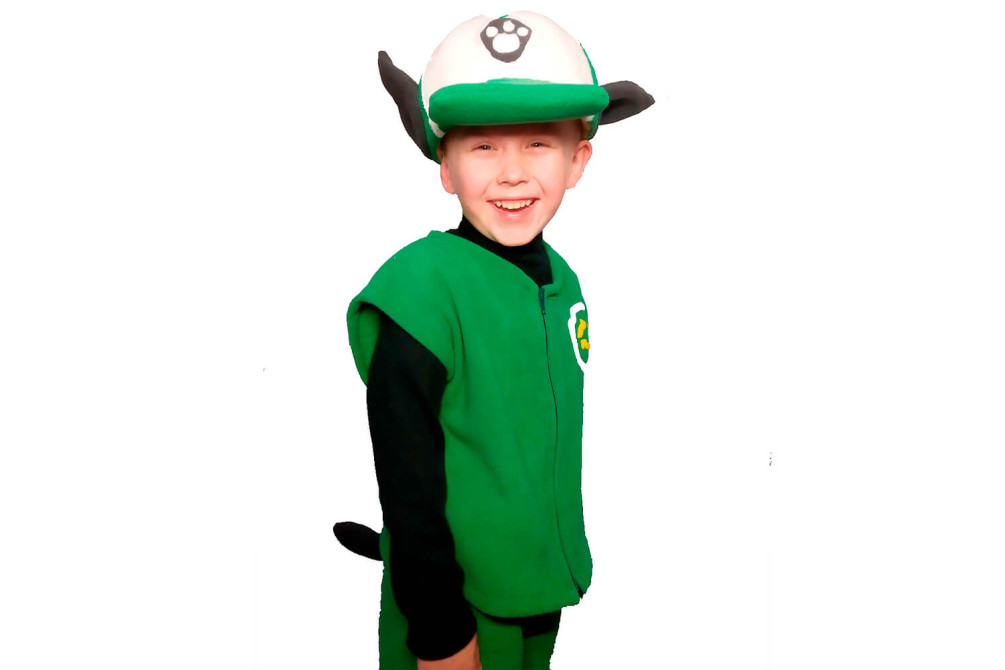 В качестве головного убора у щенка бело-зеленая бейсболка, на которой размещается эмблема патруля, на вид она, как отпечаток собачьей лапки.