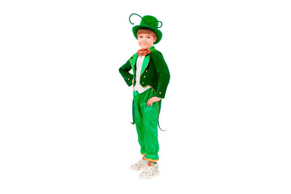Карнавальный костюм для мальчика Кузнечик – эффектное воплощение образа персонажа из знаменитой песни про Кузнечика. Яркое зеленое прыгающее насекомое завораживает и удивляет многих детей. Такой костюм может понадобиться для выступлений и маскарадных торжеств. В комплект наряда входит фрак, брюки, цилиндр и бабочка.