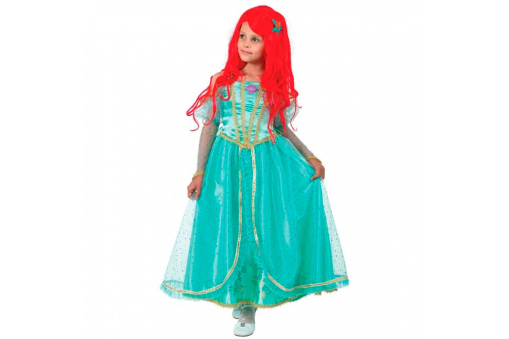 Наряд подойдет жизнерадостным любознательным девочкам, не лишенным озорства и кокетства. Костюм выполнен из высококачественных материалов, дополнен шикарным париком - маленькая любительница истории Ариэль будет в восторге от этого образа, а замечательные фотографии с торжества еще долго будут радовать и восхищать маленькую фантазерку.