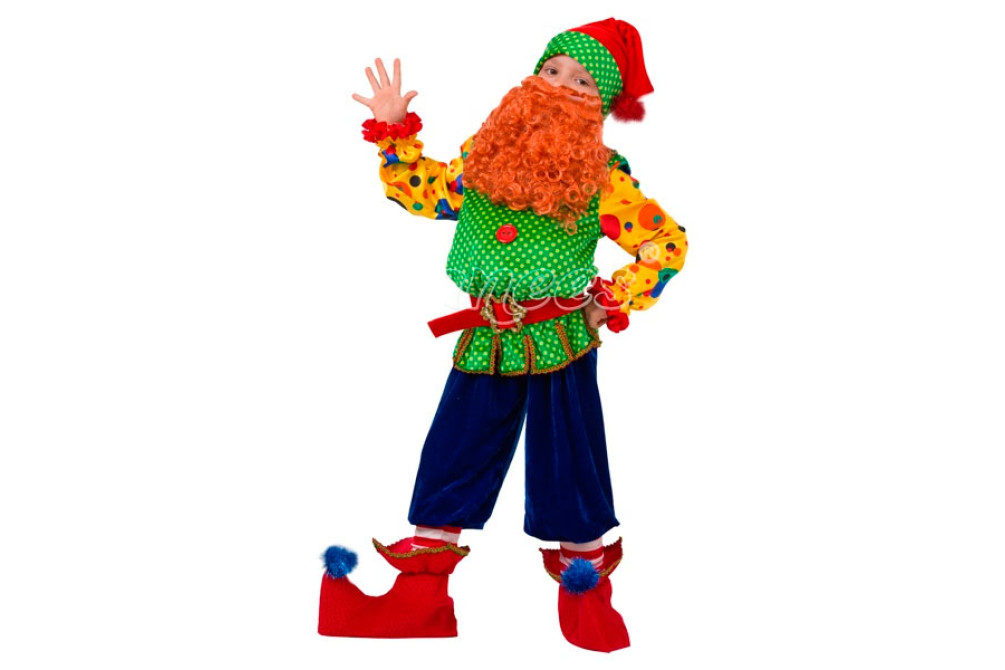 Ваш сын получил роль гномика на Новогоднем утреннике? Невероятно яркий и забавный карнавальный костюм "Гном Том" подойдет для праздника как нельзя кстати. Основные детали наряда выполнены из велюра. Бриджи с полосатыми гетрами делают образ веселым и жизнерадостным. Колпак и рыжая борода добавляют гномику сказочности.