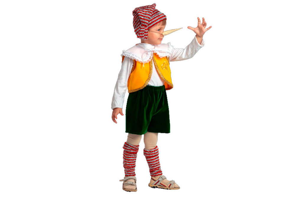 Вашему малышу досталась роль Буратино в Новогоднем утреннике? Очаровательный детский карнавальный костюм "Буратино" - 2 - это замечательный способ обеспечить ребенка и всех гостей отличным настроением на весь праздник. Яркий наряд любимого персонажа запомнится всем гостям: желтая жилетка поверх белой шелковой рубашки, бархатные изумрудные шорты, полосатый колпачок и длинный задорный нос. Ребенок сам придумает веселую сказочную игру.