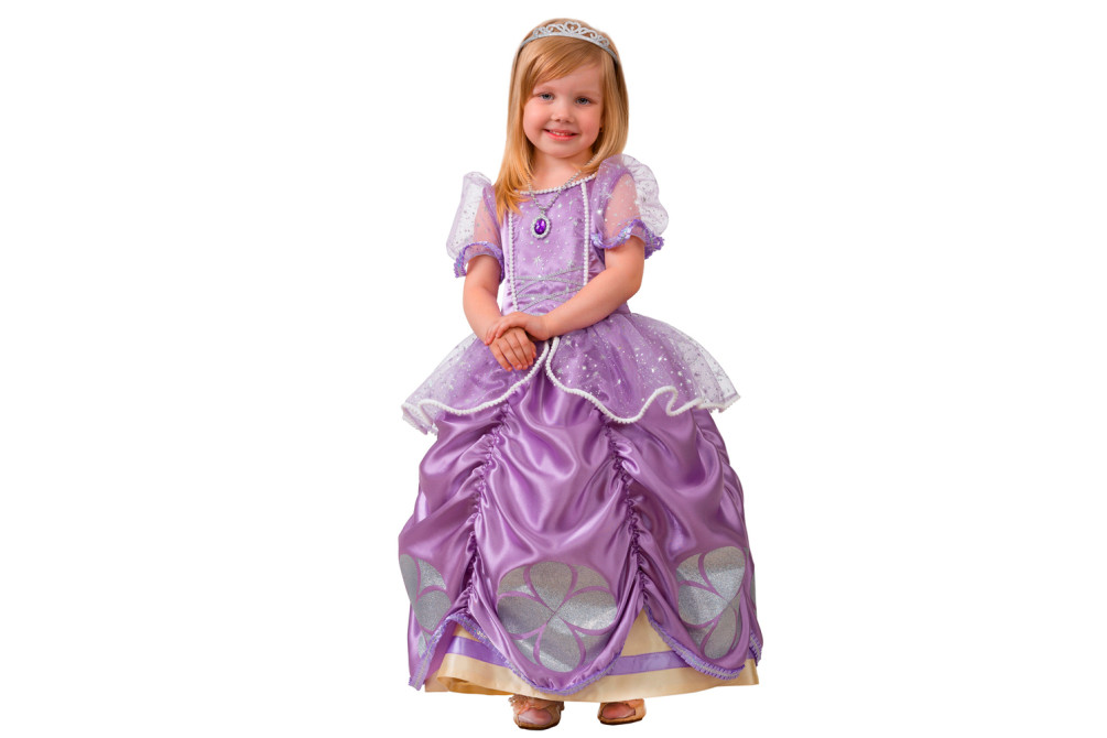 София Прекрасная однажды стать принцессой. Образ создан по мотивам мультсериала, повествующего о жизни девочки Софии, по счастливой случайности ставшей принцессой. Она получает волшебный амулет Авалора, за которым уже давно охотился Мистер Седрик, придворный волшебник. Софию ждет множество различных, порой даже опасных приключений и трудностей, которые ей помогут преодолеть друзья и неиссякаемый оптимизм. Карнавальный костюм выполнен из текстильных тканей.