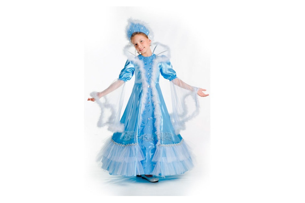 Карнавальный костюм »Снежная королева» «Снежная королева», пожалуй самая любимая многими детьми сказка Ганса Христиана Андерсена. Никого не оставит равнодушным образ властной, холодной королевы. Костюм также идеально подойдет для образа Зимы. В КОМПЛЕКТ ВХОДИТ: платье с воротником; кокошник; Ткань: жаккард, атлас, фатин. Размеры: 122-128 см (7-8 лет). Залог 40 руб.