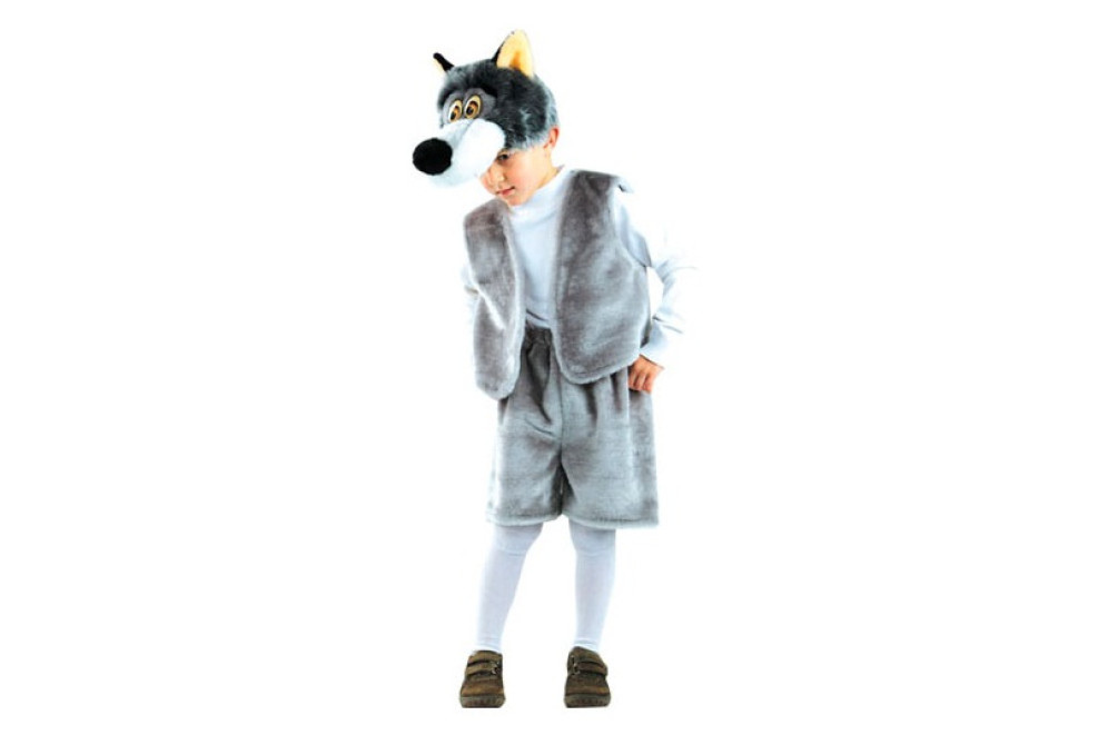 Карнавальный костюм »Волк Прохор» Забавный маскарадный наряд изготовлен из мягкого и прочного искусственного меха. Шапочка-маска с огромным черным носом и наивными желтыми глазами не оставит никого равнодушным, а серые шорты с длинным хвостом и жилет прекрасно дополнят образ сказочного волка. Подходит как для Новогоднемго торжества, так и для театральных постановок. В КОМПЛЕКТ ВХОДИТ: шорты с хвостом; жилет; шапочка-маска. Размеры: 98-110 (3-5 лет), 110-122 (4-7 лет). Залог 30 руб.