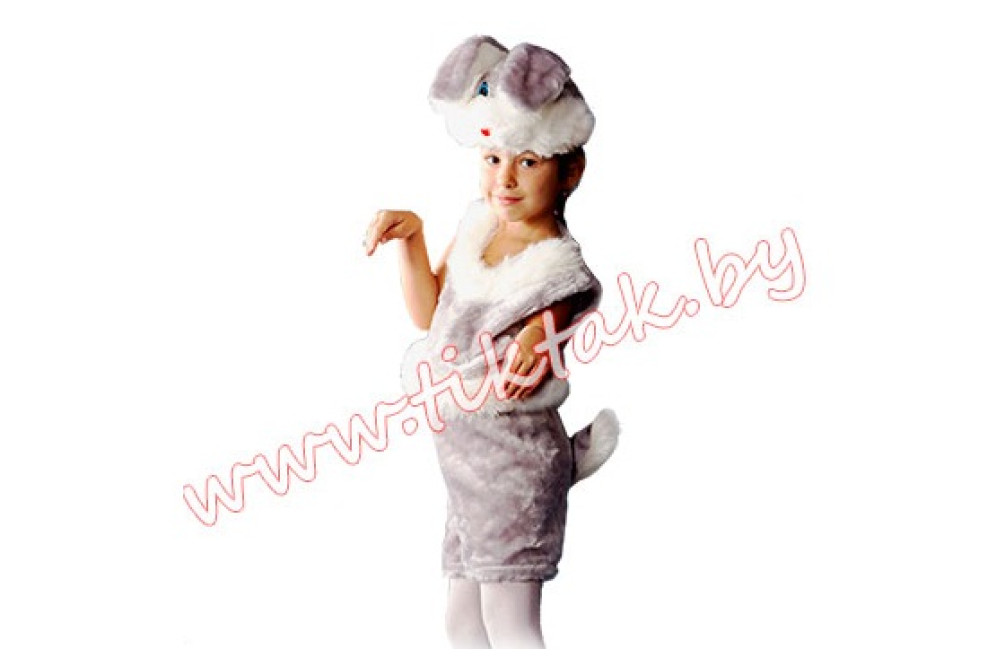 Серые шортики с пушистым хвостиком, маечка, отороченная белым мехом и шапочка-маска понравится Вам и Вашему ребенку.