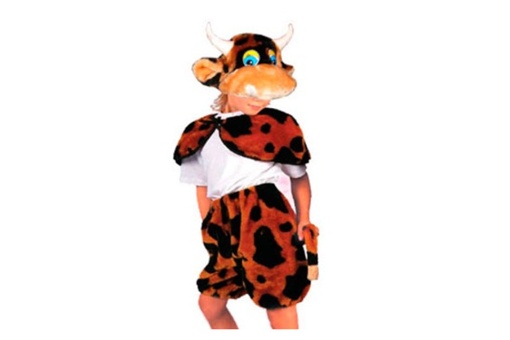 Бесподобный детский маскарадный костюм »Бычок» отлично подойдет к любому празднику, понравится Вам и Вашему ребенку, поднимет настроение всем гостям и будем замечательно смотреться. Костюм состоит из панталонов c хвостиком, накидки на плечи, шапочки с милой мордочкой бычка. Такой »Бычок» позабавит всех гостей карнавала или зрителей театральной постановки, представляете, насколько красочнее получится его номер в этом замечательном костюме? Такое ребенок будет помнить всю жизнь, ведь именно из таких душевных моментов соткано одеяло детства.