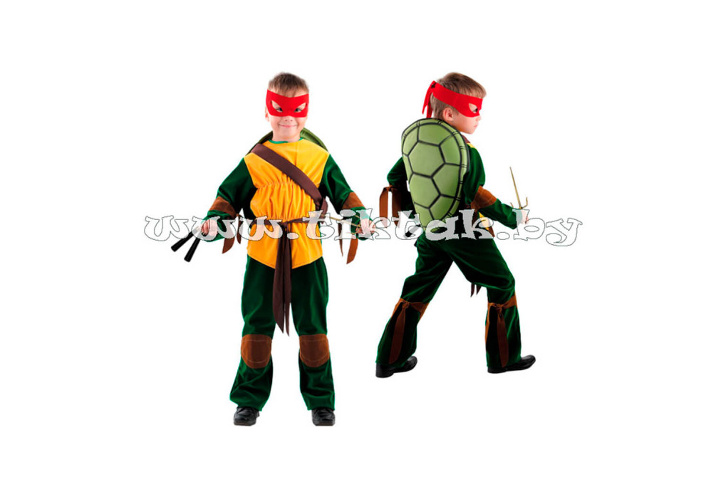 Что главное в детском карнавальном костюме? Конечно игра, которую сочинит Ваш неутомимый ребенок. Так сделайте ему подарок, дайте почувствовать себя любимым всеми героем четверки борцов за справедливость: Леонардо (синия повязка), Рафаэлло (красная повязка), Донателло (фиолетовая повязка), Микеланджело (желтая повязка) Цвет повязки и тип оружия выбирает малыш! Ткань: атлас.
