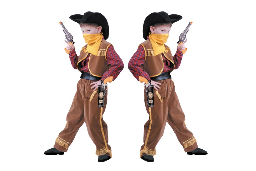 Что главное в детском карнавальном костюме? Конечно игра, которую сочинит Ваш неутомимый ребенок. Так сделайте ему подарок, дайте почувствовать себя героем, покорителем Дикого Запада, победителем индейцев, неутомимым наездником. Бархатный материал детского карнавального костюма приятен на ощупь, прочен, не садится и не линяет. Костюм отлично сидит на детской фигуре и совершенно не сковывает движений, не мешая играть весь день на пролет. Бесподобный жилет с бахромой и брюки дополнены широкополой ковбойской шляпой. В этом костюме Ваш сын безусловно станет главным персонажем на празднике.