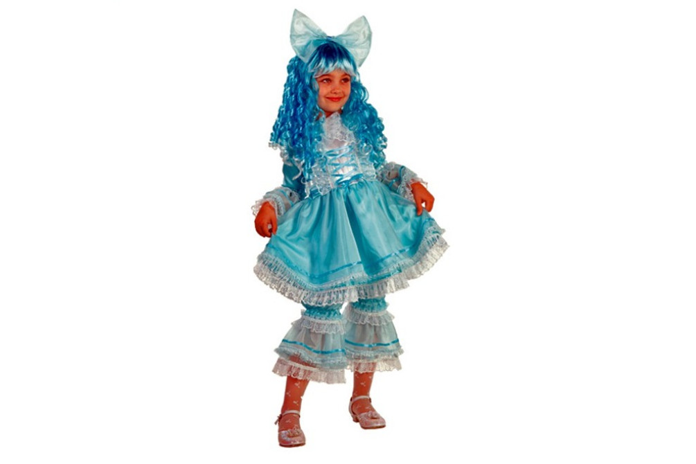 Костюм »Мальвина-1» очень понравится Вашей дочке. Красочный, необычный образ любимой героини, на которую мечтают походить все маленькие девочки,послужит основой веселой игры. Ваш ребенок будет непременно в центре внимания на любом празднике, утреннике, семейном торжестве. Голубое кукольное платье со шнуровкой на груди, красивыми рукавами и пышной юбкой дополнено бесподобными панталонами и огромным бантом в голубых волосах. Детский карнавальный костюм выполнен из высококачественных нетоксичных материалов, превосходно сидит и не сковывает движений.