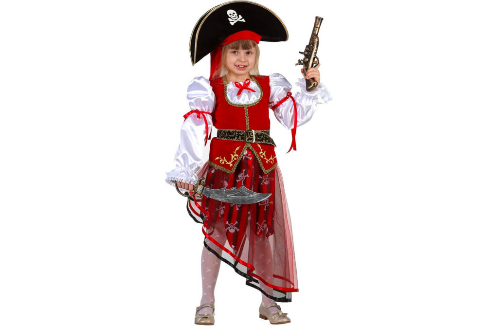 Детский маскарадный костюм «Пиратка / разбойница» — это красивый задорный наряд героини любимой сказки. Наряд смелой разбойницы, предводительницы грозной шайки состоит из белой блузы с широкими рукавами, красного жилета с золотой отделкой, сложнокроенной многослойной юбки, шляпы с Веселым Роджером. Девочка легко вживется образ лихой разбойницы. Вы будете рады видеть свою малышку счастливой.
