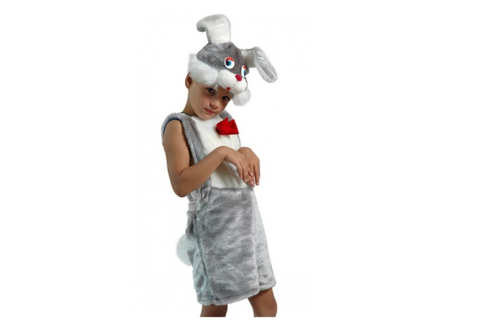 Озорной детский маскарадный костюм «Зайка серый» — отличное дополнение к любому празднику. Серый комбинезон (шортики с пушистым хвостиком и маячка с нашитым красным галстуком-бабочкой) и шапочка-маска понравится Вам и Вашему ребенку. Детский карнавальный костюм «Зайчик» из коллекции «Карнавал-мех» будет отлично смотреться на Вашем празднике, ребенок будет в восторге, гости будут очарованы Вашим малышом, останутся только лучшие воспоминания от торжества.