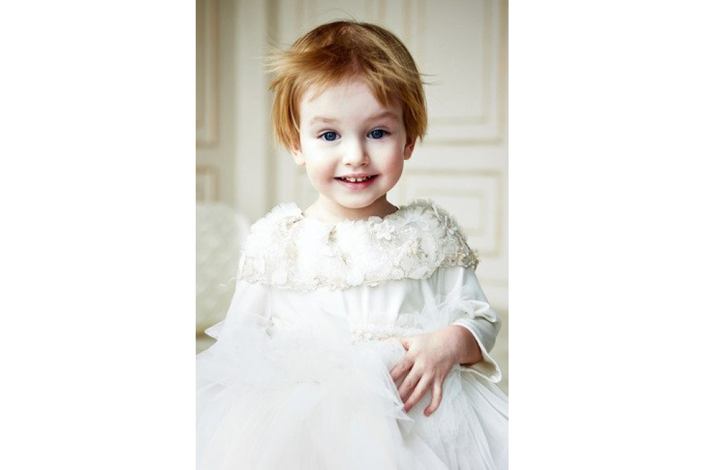 Рост 82-92. Пышное платье для маленькой принцессы нежного цвета айвори. Верх платья украшен кружевом. Юбка из тонкого легкого воздушного фатина.