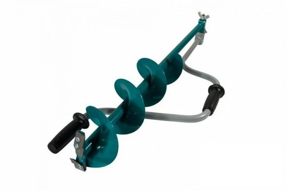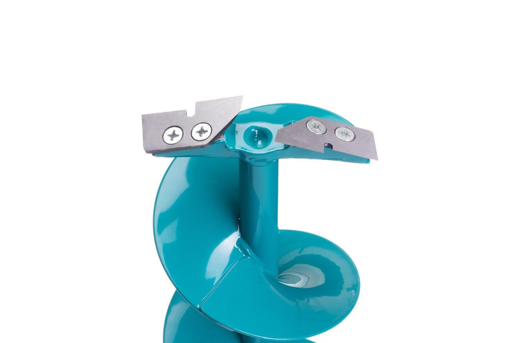 Ледобуры комплектуются качественными ножами из инструментальной стали с высокой твердостью (после закалки 55-60HRC) и запатентованными углами заточки. Ледобур двуручный. Длина спирали 500 миллиметров.